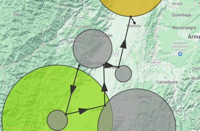 Smaller airport and city with less service. 1 and 30 minute drive to Roldanillo.