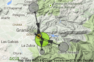 · De La Alhambra al mar... Saliendo desde el despegue de Las Rozas en Monachil a 1350 metros y viendo Granada al fondo, tenemos La Alhambra a escasos 6 km del despegue y desde allí, pasando por el Pico Veleta o el Mulhacén (+3400) se hace un planeo de casi 40 km sobre Las Alpujarras, se llega a Castell de Ferro o la Playa de Carchuna.