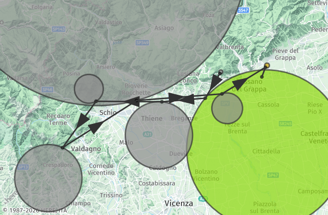 From Verona/Vicenza follow A4/E70, take the exit onto A31, take the SPV exit toward Pedemontana Veneta, take the exit Bassano Est - Rosà and proceed north on SS47