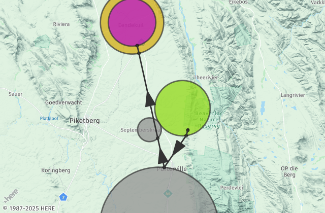 Porterville located in the South West of South Africa, in about 90 km from the Atlantic ocean, and 120 km North East of Cape Town. It offers a nice mixture of thermal and dynamic flying, offering big distance flights possible on the ridge and in the flats.