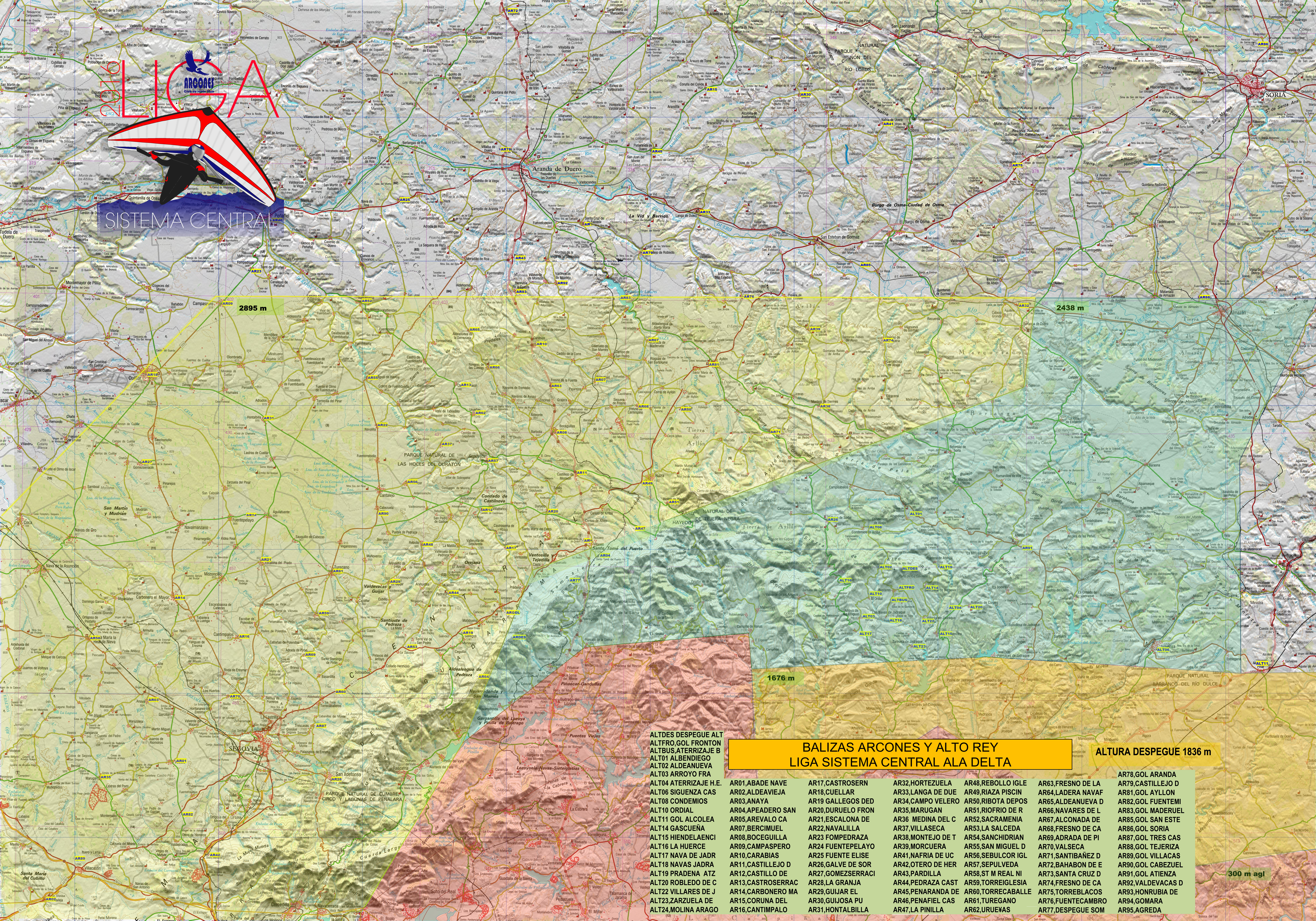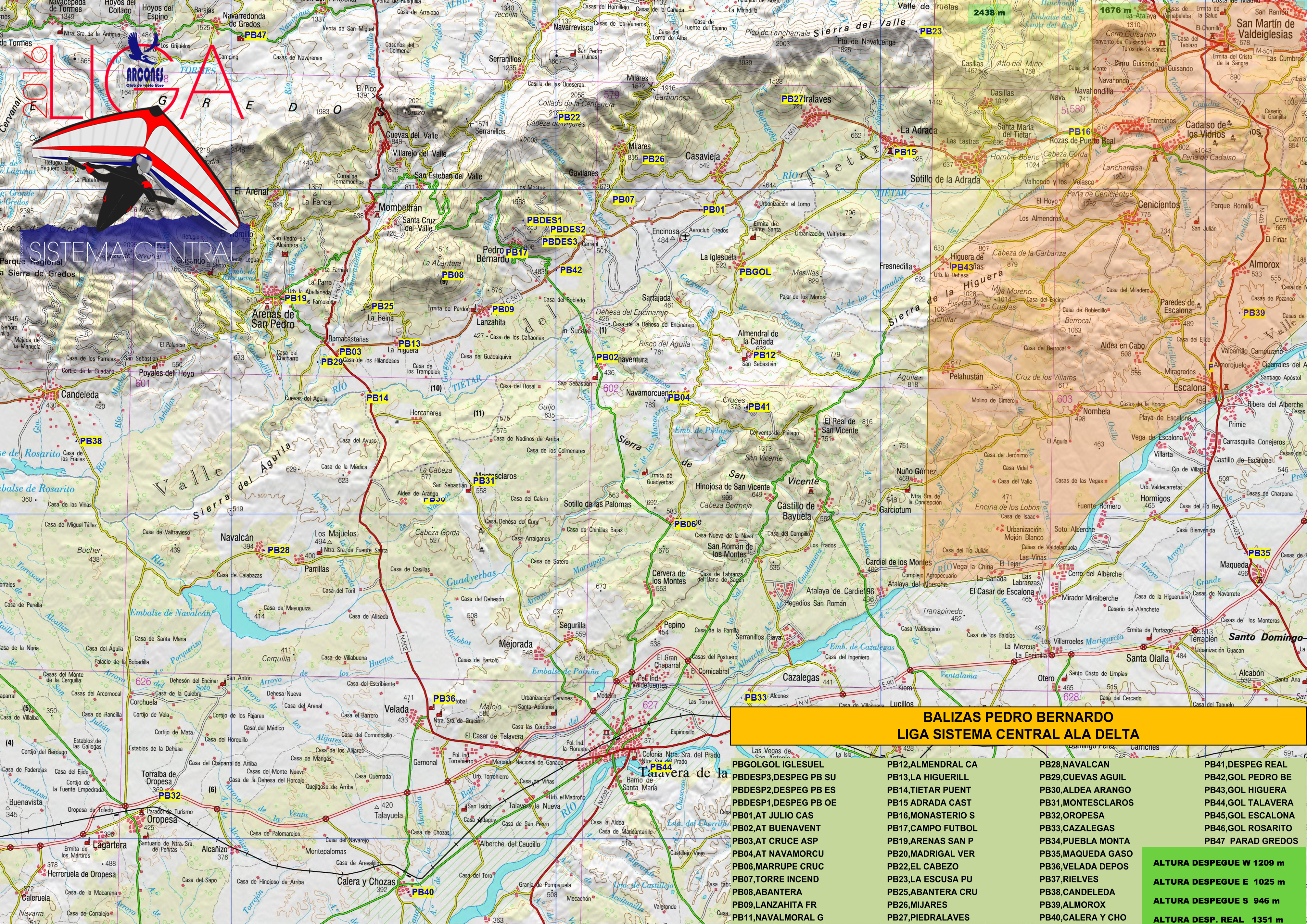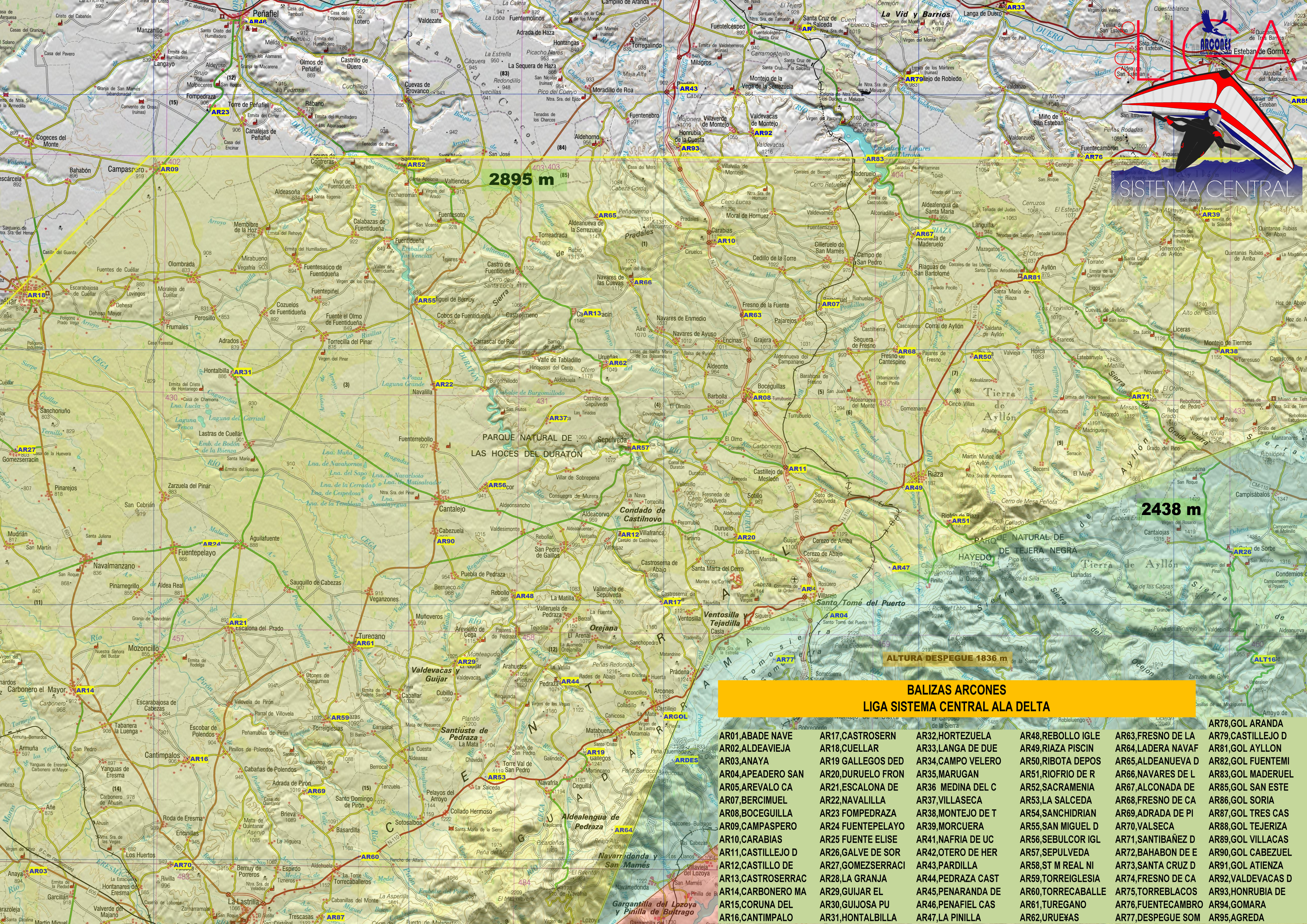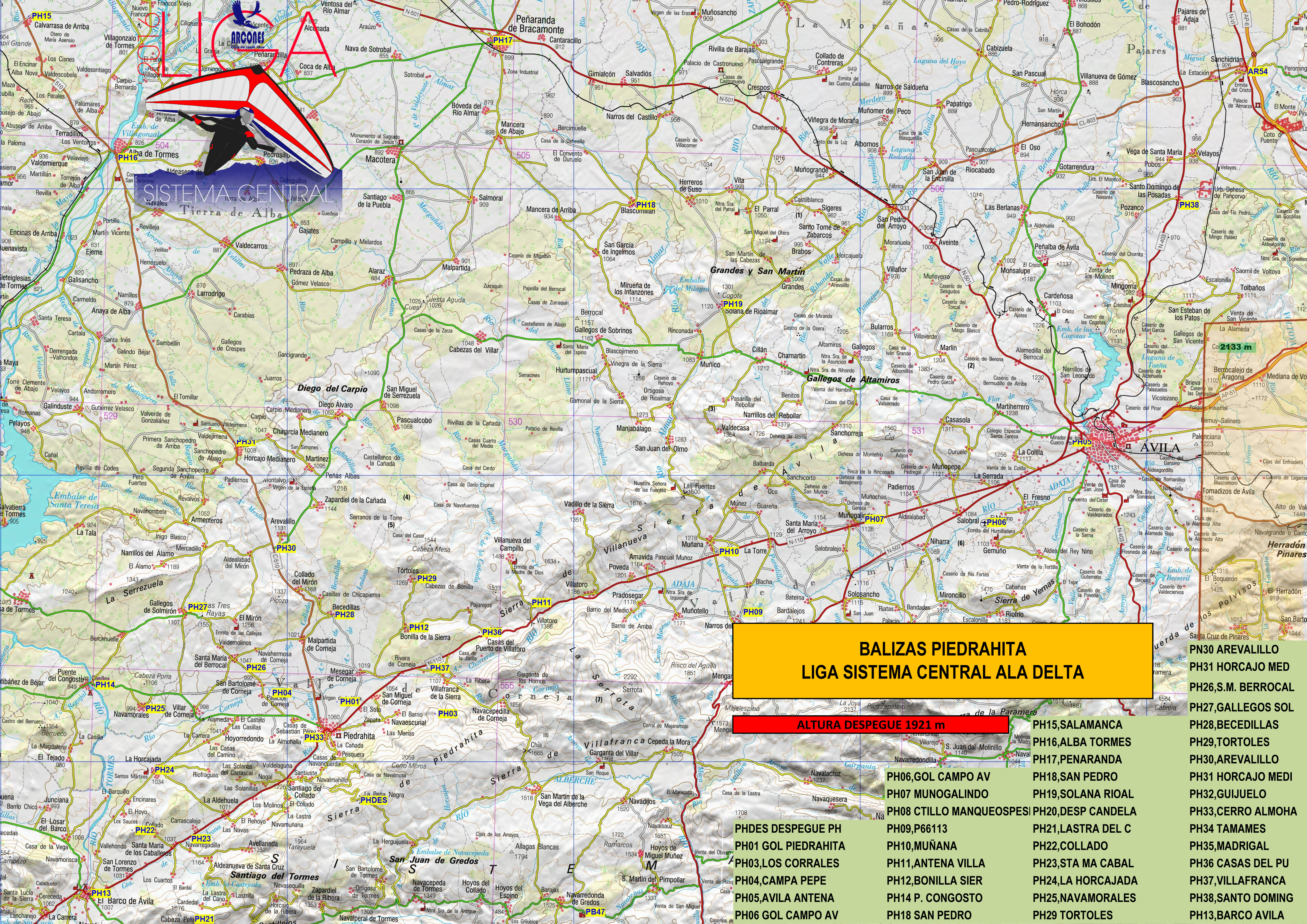 Dependiendo de la méteo se utilizarán los despegues de: Arcones (Segovia), Piedrahíta (Avila), Pedro Bernardo (Avila), Alto Rey (Guadalajara).