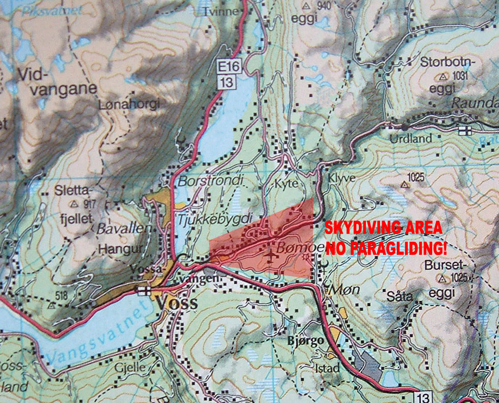 Respekter flyforbudssonen/droppsonen rundt Bømoen flyplass.